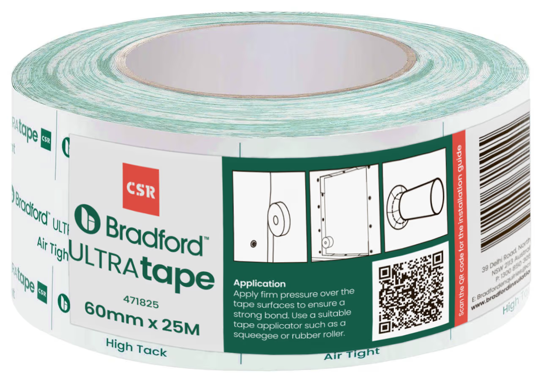 Designed for use with pliable building membranes such as the Bradford Enviroseal and Thermoseal ranges, the high bond strength Bradford ULTRAtape is suitable for sealing overlaps, joints, and penetrations, as well as for membrane repairs